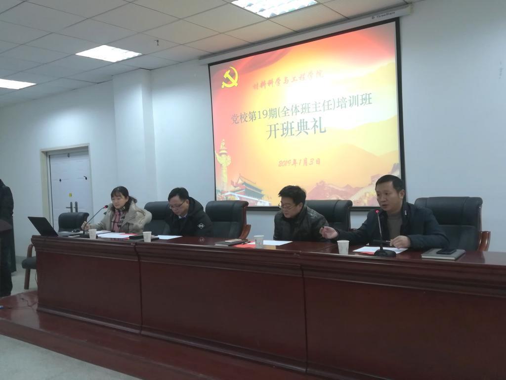 为提高班主任带班能力,更好地服务于党校教育工作,2019年1月3日上午,爱游戏官方网站委员会第19期党校班主任培训班开班仪式在材料学院二楼报告厅开幕,并计划在随后两天开展党校全院全体班主任培训课程。 一、开班仪式