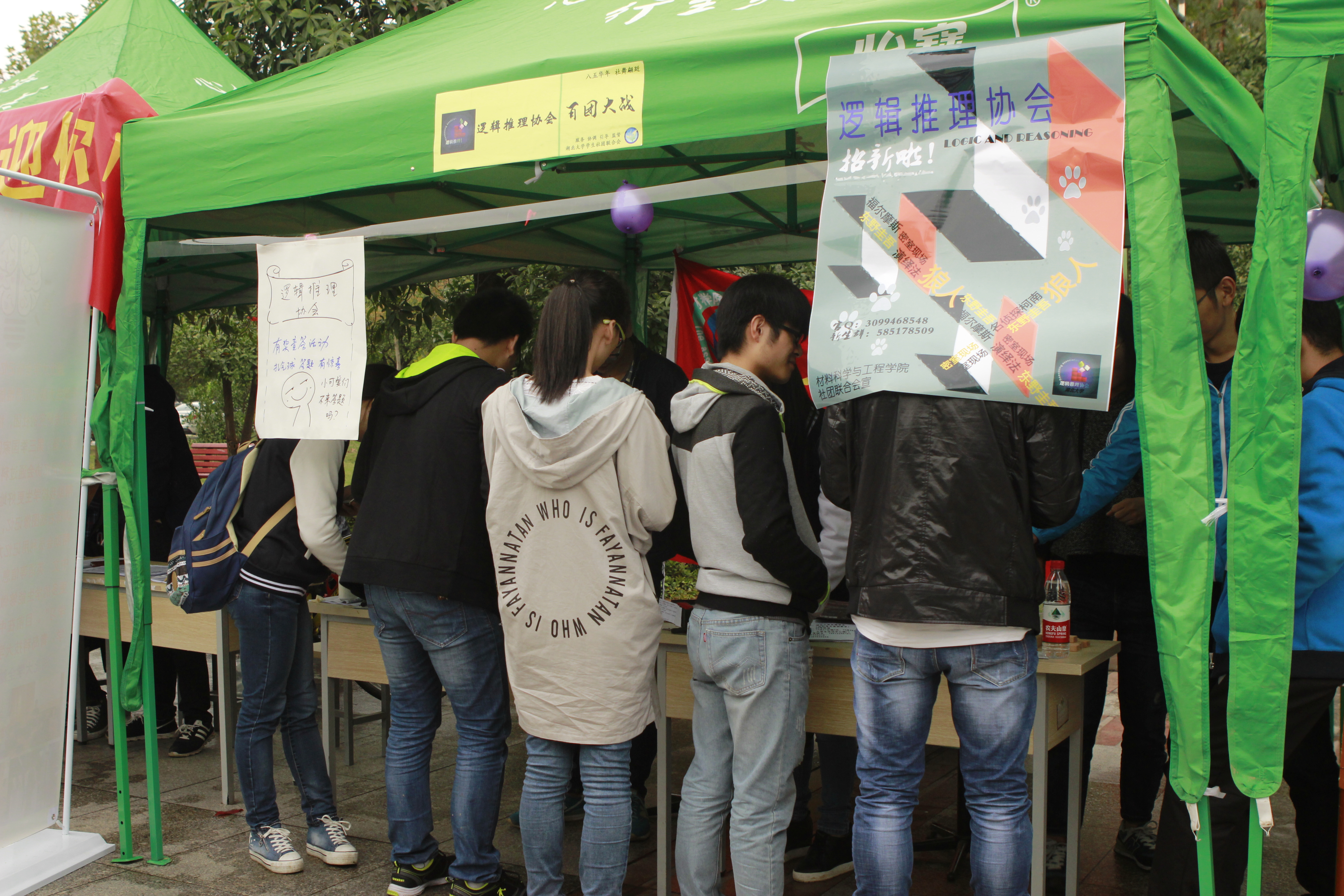 10月29日,结束了两天的本部招新活动后,“战场”转移到了通识教育学院。在行政楼前面的广场上,近60支社团再次展开招新角逐。来自16级新闻传播专业的姚宇飞是逻辑推理协会的一员,很早就来帮助社团工作人员进行招新工作。他表示自己一直就是一个桌游迷,所以很早就加入了社团的新生群,也在里面认识了一些有共同兴趣爱好的朋友。羽协这边,延续了在本部的吸引力,招新点周围总是围满了人!材料论坛稍显尴尬,但是也有不少人前来咨询报名。