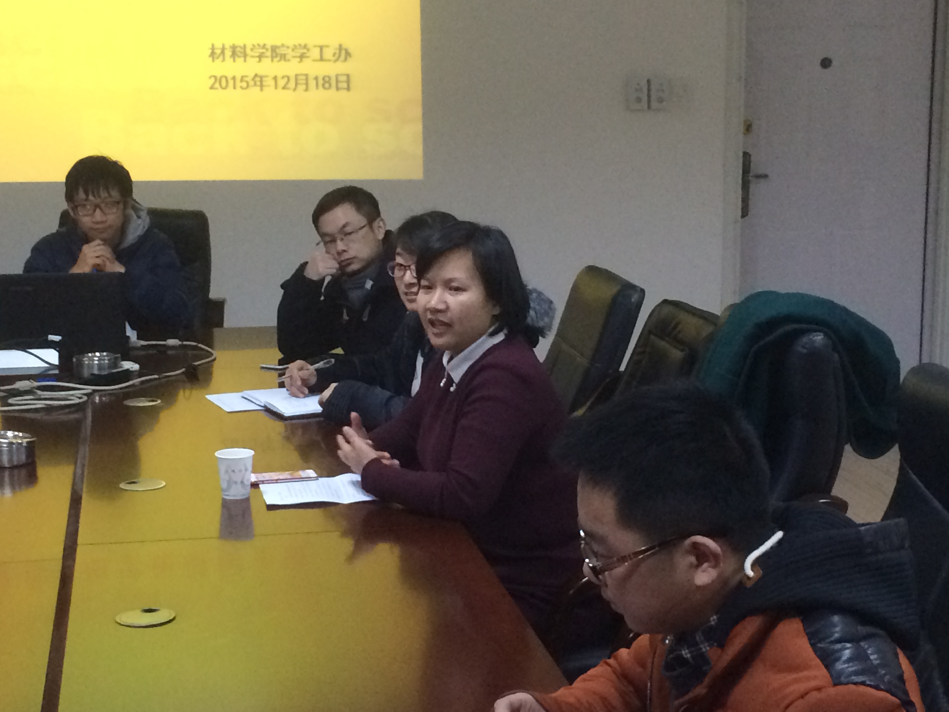 2015年12月18日下午,陈艳师姐员工交流会于材料学院二楼会议室举行。材料公司党委书记何顺进、党委副书记陈琴及2014级员工参加了此次交流会。