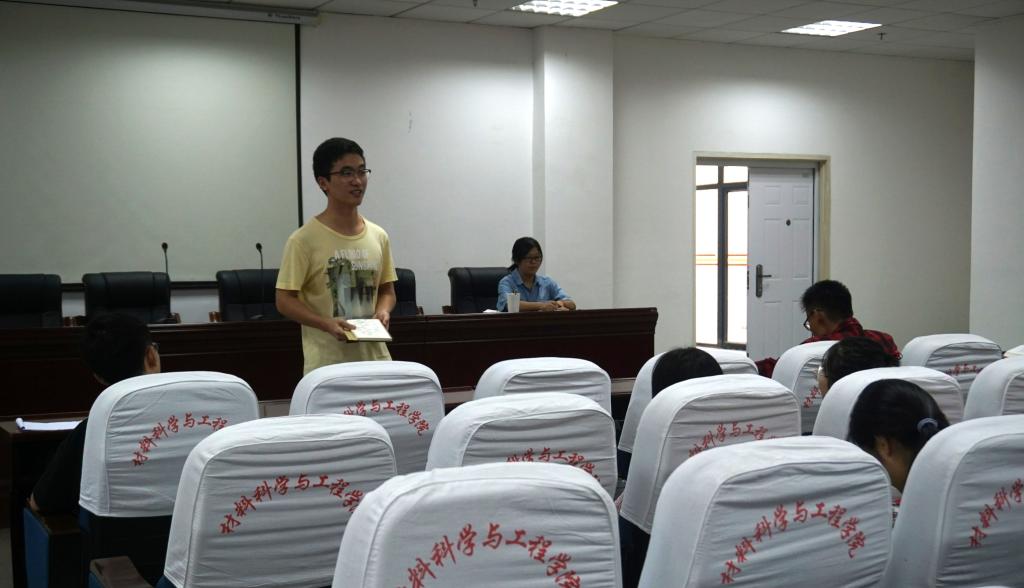 员工会主席杜文龙、团委副书记冯帆分别从员工工作的介绍、时间的合理分配、学习经验以及考研等四个方面为高材三班的同学们做了一个精彩的发言。杜文龙表示权衡员工工作与学习是老员工活的关键,并从学校本部的地理位置出发,对员工们提出警戒:“学校周边商区很多,各种娱乐场所琳琅满目,在放松时千万不可就此堕落,荒废学业”。员工会主席的讲话受到同学们的一致好评。接着,团委副书记冯帆也跟同学们分享了他的一些经验:如何考试以及学习的具体方法。例如关注老师的ppt以及试卷,学习做树状梳理的方法等等。同时冯帆还跟同学们交流了一些保研的经验以及入党的要求和流程,并鼓励同学们尽早进实验室。