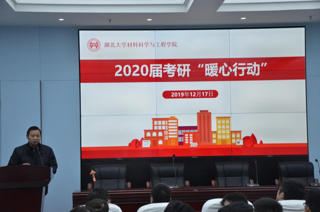 12月17日爱游戏官方网站进行了2020届考研“暖心行动”,党委书记何顺进,辅导员王斌,各班班主任,2020届考研材院学子,参加本次活动。活动全程由党委副书记陈琴主持。 活动开始,党委书记何顺进致辞,致辞中提到公司考研率高达80%,随着近年来考研人数的增多,公司同学考研竞争压力也越来越大,何书记结合自身考研经历,对各考研学子的压力表示理解,随着考试时间的接近,学业紧迫,同时也鼓励2020届考生好好备考。 而后党委副书记陈琴同样表达了对考研学子的关怀和鼓励,并组织同学分发本次活动准备的“孔庙祈福”考研文具礼包。